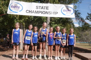 The elementary school girl’s cross country team won every single one of their meets, including state! These girls have worked hard in practice all season, which resulted in their wins. Karis Fisher (4th grade) says, “My coach and my teammates helped make this championship possible through the spirit and running together with teamwork.” All nine girls contributed to their team wins and worked hard to earn their “state champions” title. Races can be challenging at times, but Caroline Pace (4th grade) reminds herself “to breathe; and I tell myself that God loves me.” The junior girls team ran their hearts out this season, and we are eager to see what they will accomplish next year.