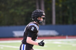 Zander (#2), sophomore, plays for the strong and close community football creates. He explains that “the brothers you gain by playing is just incredible.” Even when a tough game resulted in him being “wheeled off the field” by emergency responders, Zander noted that “it was great afterwards to see all the support [he] got from Johnson Ferry.”